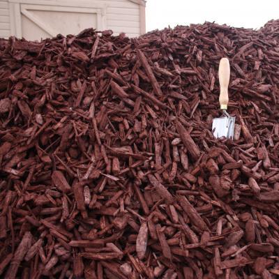 Color-enriched Mahoghany Mulch replicates the color of California's redwood mulch without the high cost of long-distance transport. The rich rusty brown color is meant to bring a fertile, deep look to your garden.